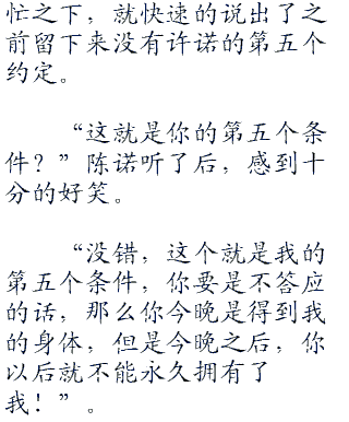 再说了,虽然告诉了她办法,她也能自己做,但他陈诺又不是白痴,这种好事怎么能给女人自己做,当然是要他们男人来帮忙才行了。