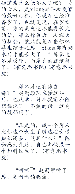 “这就是为什么你的美兔长不大的原因,带着....”陈诺非常耐心的给赵莉颍普及了一些这方面的常识。