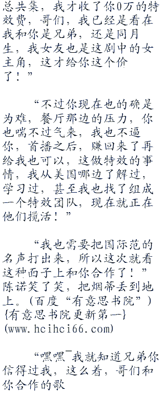 “剪辑和配乐方面,我可以让唐人公司来做,特效我也可以按照你说的这个价来给你,但兄弟,我现在真的拿不出这么多钱,电视剧首播了后,赚回来了,再给你成吗?”胡哥现在就是在做疯狂的事情了,不做的话,可能以后就不敢在搏了。