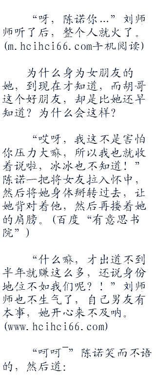 “哟?师师你不知道?”看刘师师这样追问,胡哥就问她还不知道这件事?