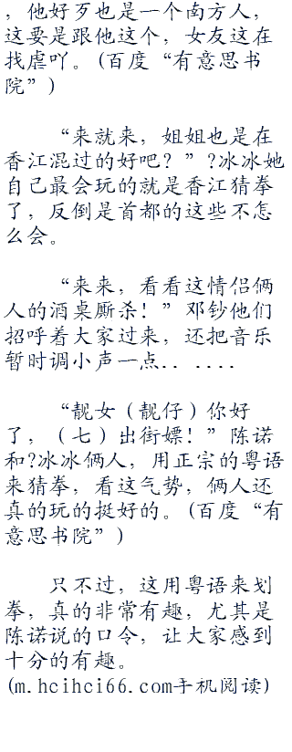 划拳,每个地区都有不同的,陈诺会的划拳,基本上都是南方这边的,广dong、广xi、海.南、香江等等这些地方的划拳,陈诺最会玩。