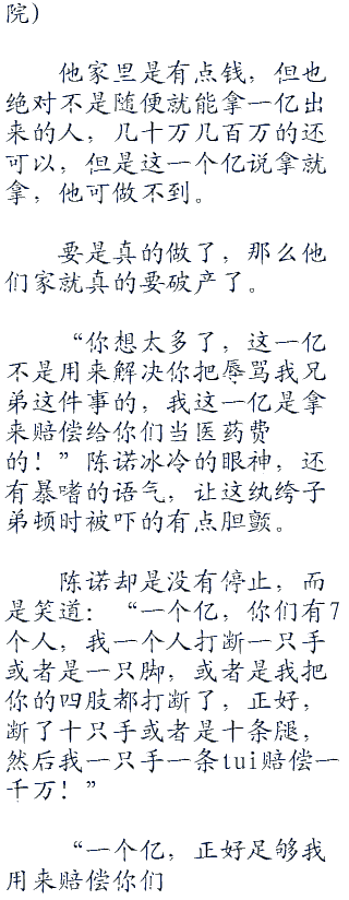 而对方就是一个有钱人家的富二代,嚣张跋扈,就算是传出了打架斗殴,去了警察局里面也没有什么,顶多给点钱就可以了。