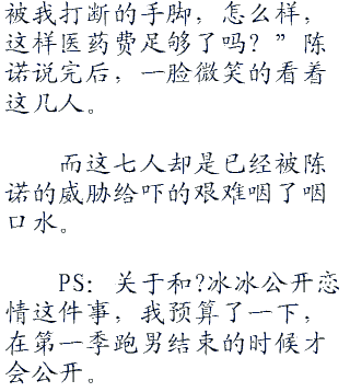 “认识我吗?陈诺,小歌手,小编剧,跑男里的成员,郑垲的兄弟,陈贺的兄弟,要打架是吗?好啊,趁着哥们我刚才喝酒还不够尽兴,你们几个来和我玩玩?!”陈诺走上来,