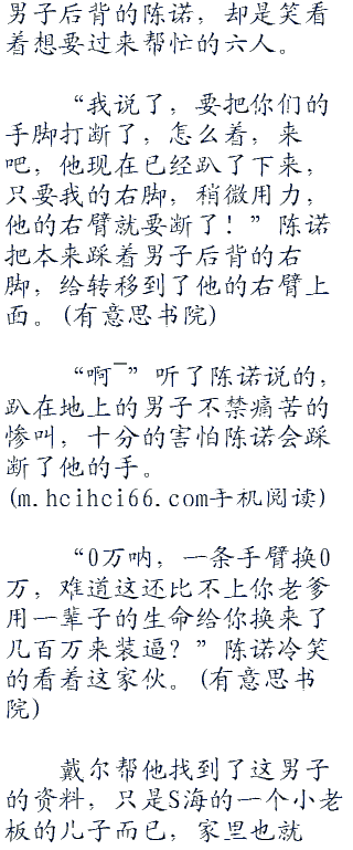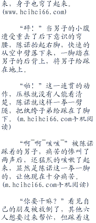 “这打人了是吧,我陈诺一个人就打断了你们七个人总共加起来的十条腿,哇嗷~想想的都尼玛的真男人,,而且我还能全部干倒了七个大男人,甚至还能打断十只手脚!”