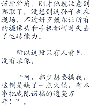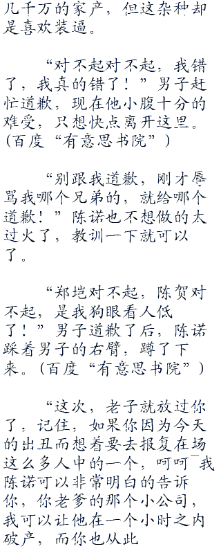 “这如此好的事情,我陈诺为什么不要做,完全就是一举多得的事情,我陈诺犯不着脑残不干是吧.?”陈诺这种威胁恐吓的语气,让本来还想要欺负一下陈贺和郑垲的这个纨绔子弟,顿时就被说的哑口无言。手机阅读更方便m.