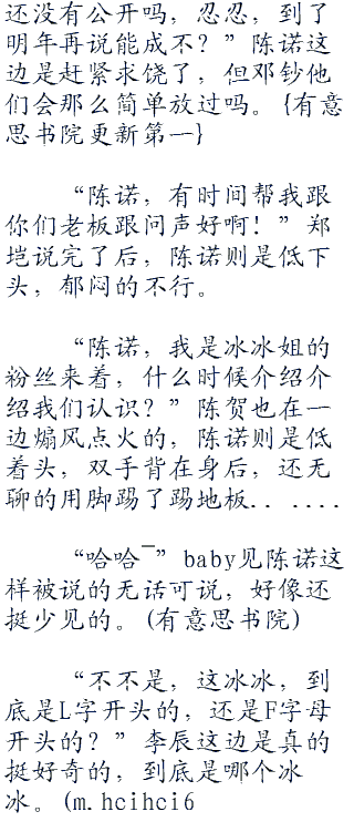 按照他说的,这还真的有可能,等那天,陈诺真的确定公开了和?冰冰的关系,这少不了就得被兄弟在节目,像他开涮邓钞和孙丽一样。