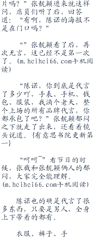 “有啊,陈诺的就在那里!”店员也不知道是什么照片,所以就以为是代言他们耐克运动鞋的海报,所以这就给张截介绍了一下。