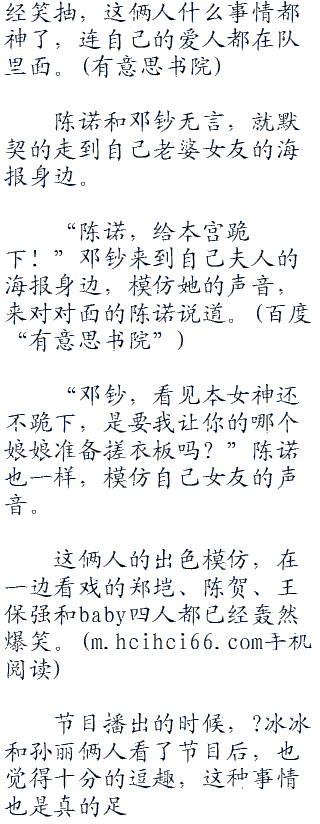 最后还打上字幕组:邓钞你放心,本宫罩着你;陈诺你别害怕,本女王给你撑腰。