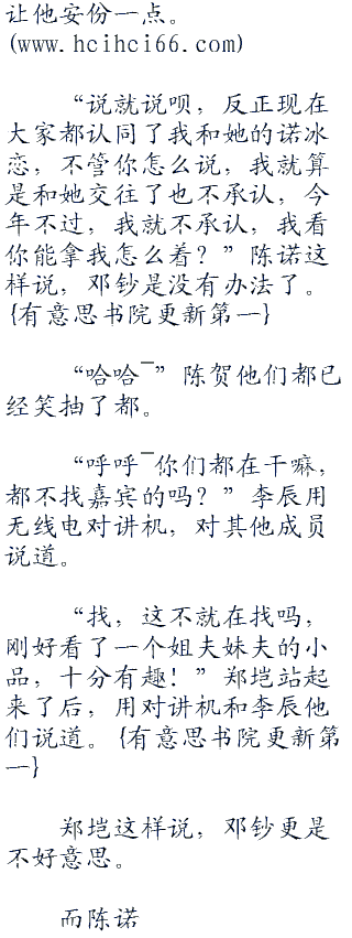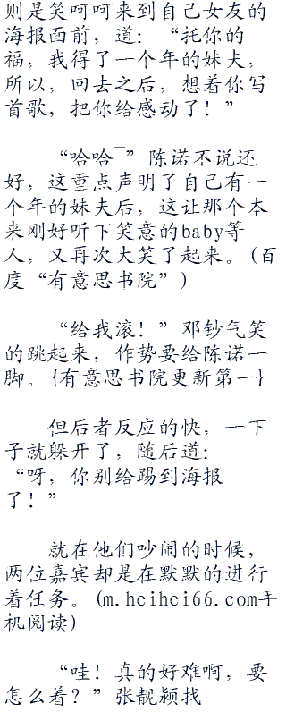“哈哈~”其他人都已经笑抽,不单单如此,节目播出的时候,观众们看了陈诺这忽悠邓钞的话,都一样因此而爆笑。