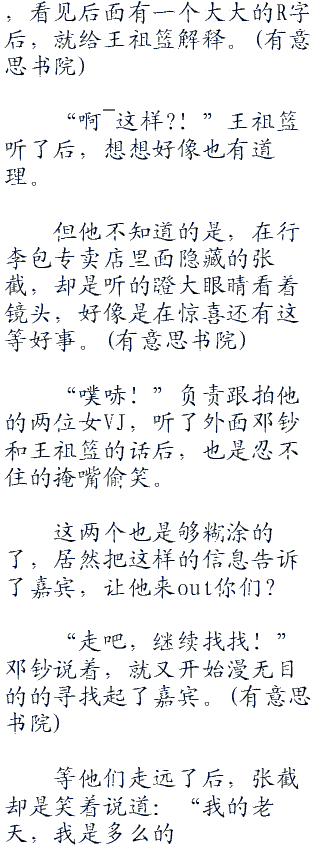 “嗨,这海报的后面不是有一个r标签吗,肯定是栏目组为了让大家知道,我们需要在这里拍摄,所以故意摆放在这里的了!”邓钞也不知道,他把这杵着的海报模版拿起来