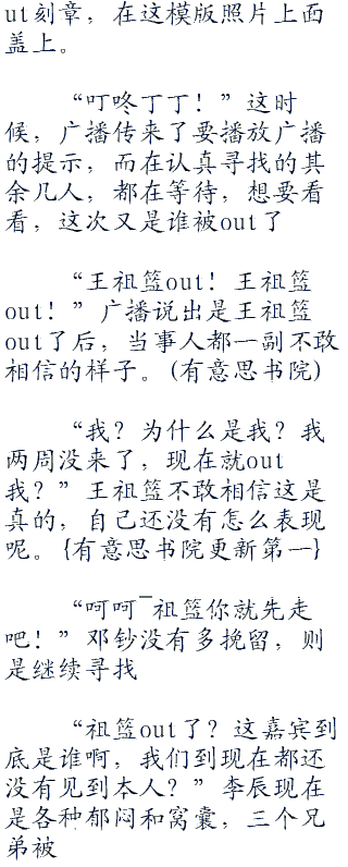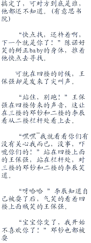 “你还不如不解释呢,现在这算什么?”baby笑呵呵的看着今天各种不在状态的陈诺,老是说错话。