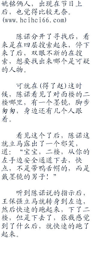 “李辰李辰,他就在你的那一栋,直接从二楼上去包抄,我从四楼跑到对面的那栋,然后下去,拦住他,他就是嘉宾!”王保强说着的时候,就跑了出来。