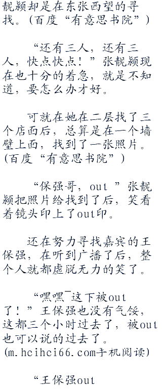 “奇怪了,我怎么就是找不到女嘉宾呢?”baby就觉得纳闷了,现在张截被out了,也没有说游戏结束,那么也就是说,还有一个嘉宾。