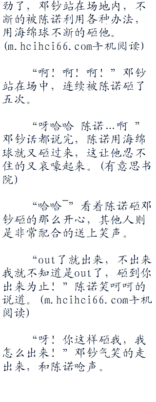 “啊~”当被陈诺强力砸过去的球给砸中了后,陈贺悲催的呻吟了出来。