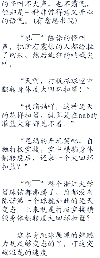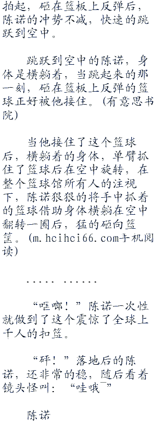 “哇!”当看见陈诺的弹跳力后,就算是浙江大学校篮球队的所有人都惊呼。