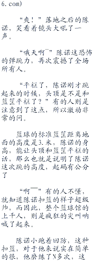 “估计能跳1米,这是最保守的了!”在场的人,都为陈诺惊人的弹跳力而吃惊,真的没有想到他能跳那么高。