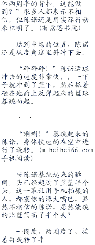 “唰~”陈诺高高从右边的篮筐下跳起来,身体在空中进行了快速的旋转。