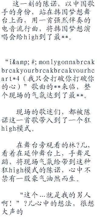 在舞台上的陈诺,尽情的表演,下面的歌迷已经彻底的疯狂尖叫了起来。