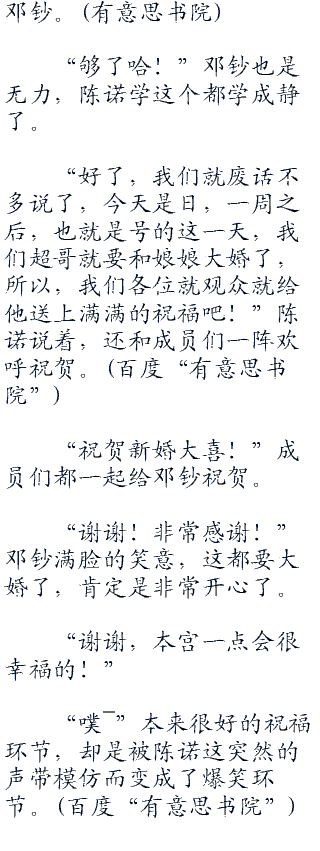 “啊哈哈~”陈诺一本正经的对邓钞说了这番话,后者还没等他说完,立马就捂着他的嘴,而其他成员们,则是再次笑抽。