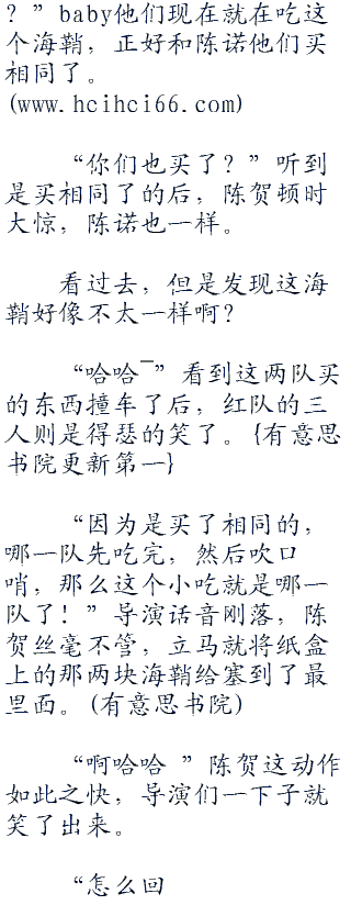 “你们吃的是什么?”导演看见红队的回来了后,就问他们现在要吃的是什么小吃。