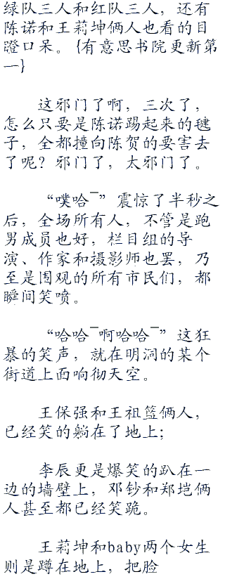 “啊哈哈~”本来就刚好停下笑意的红队和绿队六人,当看见陈贺再次中招了后,实在忍不住而爆笑了出来。