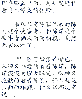 王莉坤和baby这两个女生也一样,看见陈贺两次在被陈诺给踢中要害之后,顿时就爆笑的跌坐在地上。