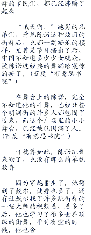 不过是身体的协调性,还是脚步上的转换连接,又或者是手势上的配合,陈诺这下炫出来的街舞,和刚才哪个男生的舞蹈比较起来,哪个更加好,一下子就分出了高低。