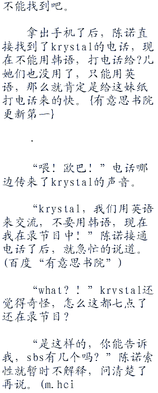 “陈诺不能用韩语和英语!!”在陈诺要打电话寻找帮忙的时候,却是听到了导演说的,不能用外语。
