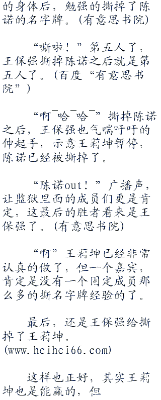 “现在只要撕掉你,那么今晚就赢定了!”王保强注意了一下身后的王莉坤,然后靠近陈贺