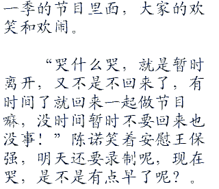 导演用对讲机了解了一下情况后,告诉了邓钞他们是王保强撕掉的李辰。