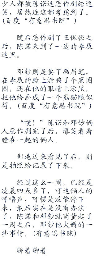 “呵呵~”邓钞和郑垲他们都已经笑抽了,就因为这个,他们就根本没有办法入睡。