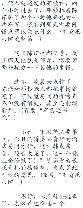 “刚回来啊,我还以为来错地方了呢,刚进来就听到了施工重地的那种噪音似得,什么情况,宝宝这呼噜声怎么跟冲击钻的声音一样?”陈诺拿着dv到旁边的房间,打算录一下王保强的冲击钻呼噜声。