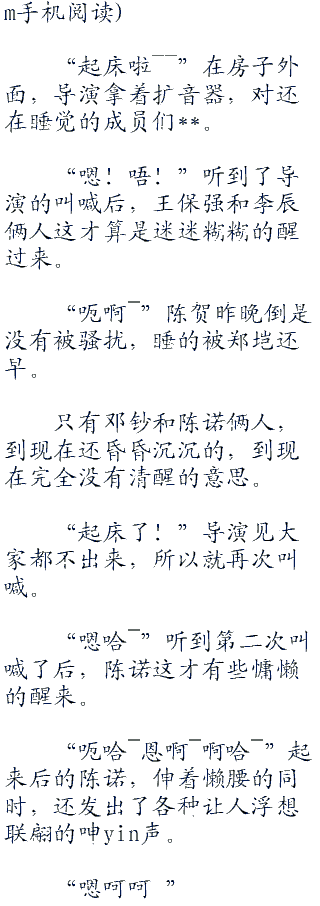 “各位观众,不是我不睡觉,而是根本就没有办法入睡,隔壁的王保强正非常嚣张的打着呼噜!”邓钞笑看着陈诺拿着dv过来,然后对镜头无奈笑道。