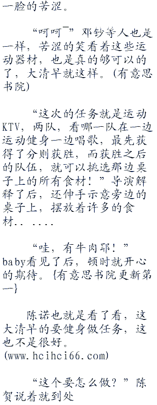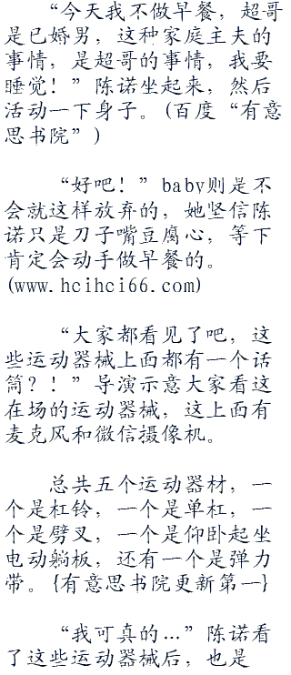 “今天的任务很简单,你们要分出两个组,来做一个简单的游戏,这个游戏的胜利者,有权选择等下做饭用的食材!”导演把今天这规则说了后,大家就知道,肯定是跟这些运动器械有关的了。