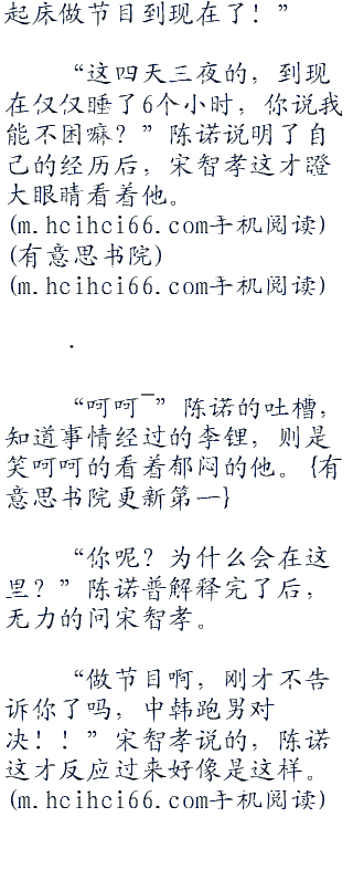 “呵呵~快点起来啦,现在是在做节目,你在这里睡觉算什么?”宋智孝娇嗔似得在他肩膀上打了一下,让他起来吧。
