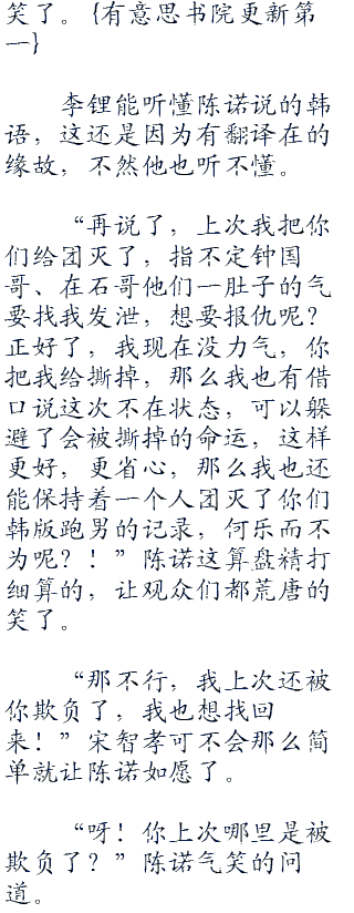 “我知道我睡着之前是在做节目,可为毛你会在这里?我们中版跑男做节目,为毛你韩版跑男的女成员会在这里?”陈诺的脸枕在手臂上,闭着眼睛问出了自己的疑问。