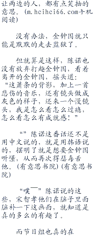 “”陈诺这样赶金钟国,这还真的是除了刘在石之外,也就没有其他人敢这样赶金钟国去监狱的了。