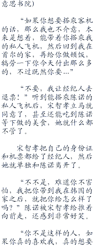 “除非你破戒,撕的第一个女人就是我!”宋智孝这自信十足,嫣然微笑的样子,真的非常漂亮,也很可爱。