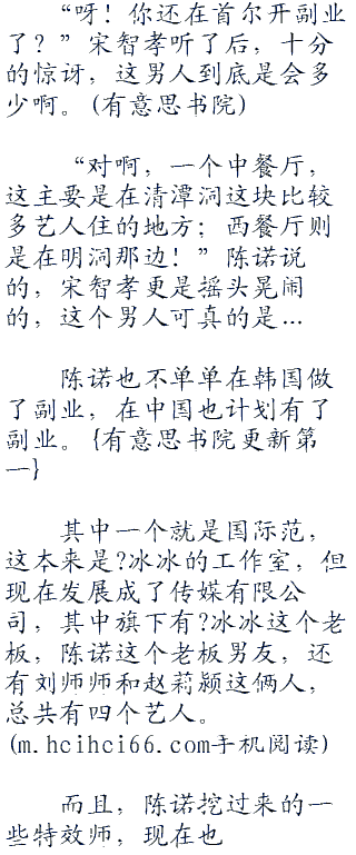 “嗯,有一个公寓,买下来了后,和我的一个朋友住,不过最近在首尔投资了两家餐厅,目前已经是在装修了,下个月就能开业了!”陈诺现在也想要进军餐饮业了。