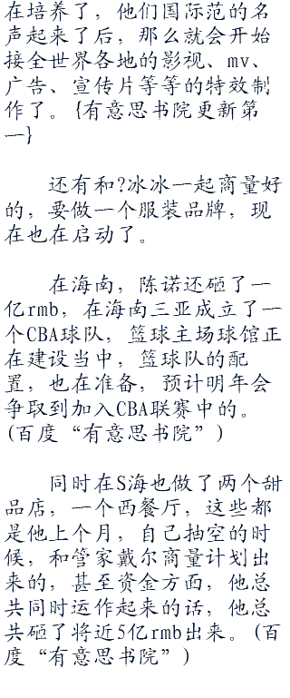 中国宝岛全能艺人的代表人物是周董,香江的全能艺人的代表人物是谢霆峰,大陆内地,陈诺就要成为这样一号人,也要成为大陆内地的全能型艺人代表人物,所以现在他也开始设计一些副业上的投资了。