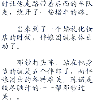 找帮忙就过去帮忙了,因为孙丽本来就是s海人,而邓钞也是住在上海,现在办婚礼的自然也是在上海了。