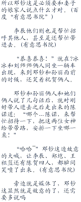 邓钞的婚礼,肯定是会有媒体的了,这有问题的话,那么圈内好友去参加婚礼,少不了就会被媒体的人询问一些事情。