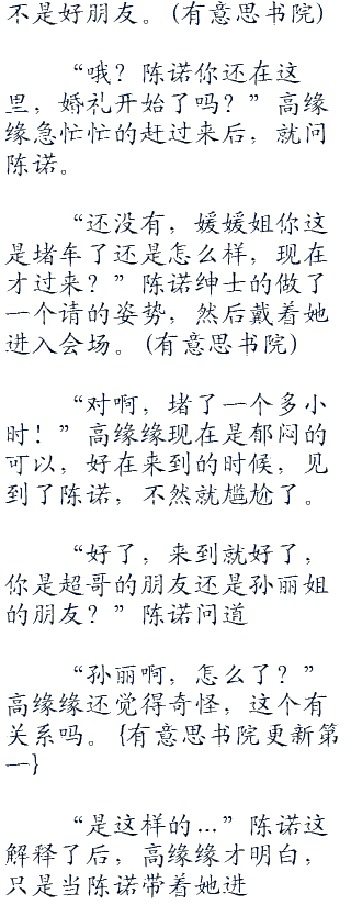 “是女神没错,但你是杰哥的女神了,好了,这边没时间,我这伴郎不能离开新郎太久!”陈诺说完后,就先离开了。