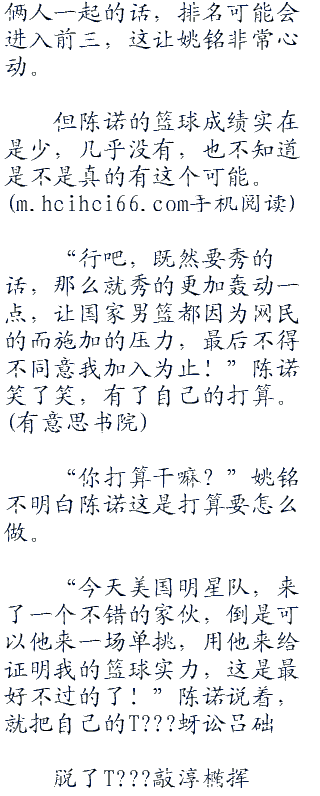 昨晚在酒席上,陈诺见到了姚铭,虽然没有多聊,但是昨晚姚铭却是邀请了,说是今天有一个慈善赛,就是中国队和美国nba球星组成的一个明星队,在上海篮球队的主场球馆打一场友谊赛。
