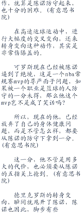 而他在防守方面,陈诺的突破,让他根本就没有办法防守。