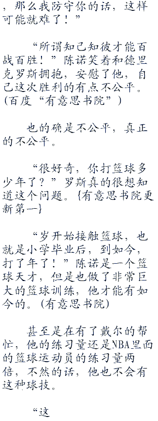 “你很厉害,我没有任何的办法摆脱你的防守!”罗斯不得不承认,陈诺的篮球技术无可挑剔,他真的很强,强大可怕。