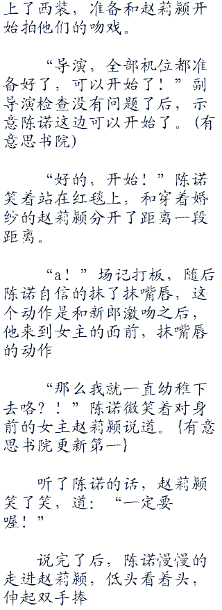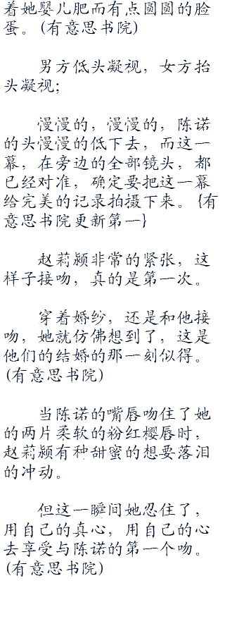 要是按照顺序来的话,那么陈诺就得和哪个老套新郎激吻后,才能和赵莉颍接吻了,这样,他陈诺的荧幕初wen给了一个男人。