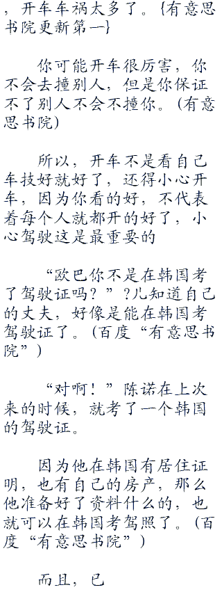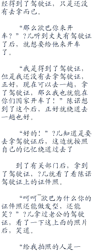 “欧巴,你们国家的驾照考试很难的吗?”?儿还真的不知道这个,但是感觉应该很难才对。