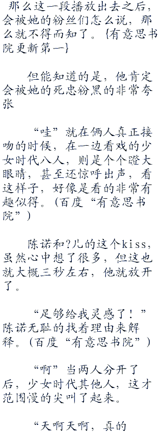 可就算如此,她还是非常的震惊,因为陈诺选择了在镜头前亲吻她。