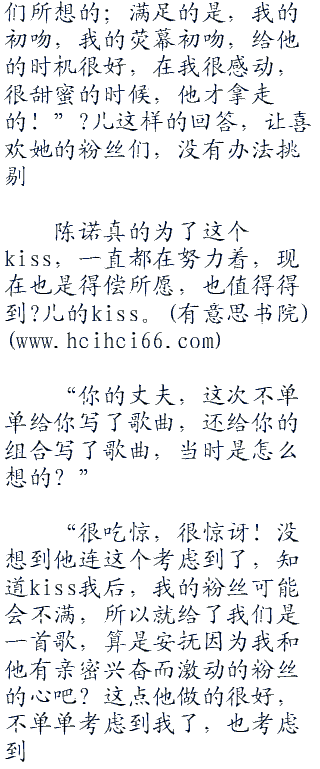 “当然了,昨晚刚才和?儿kiss了,可能我写给你们的歌曲,也就不只一首歌了,或许在下一次见面的时候,就会多一首歌出来也不一定!”陈诺再次给了她们一个惊喜。